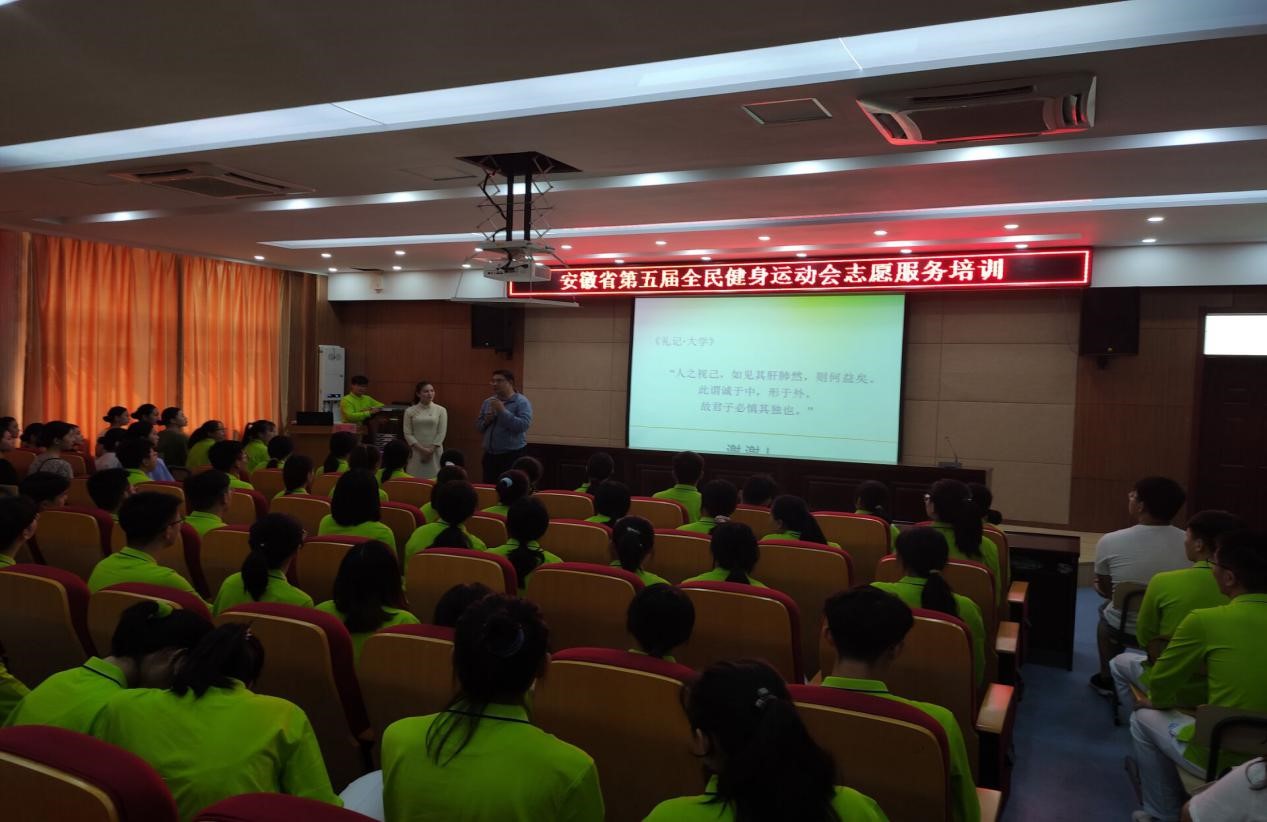 为了办好安徽省第五届全民运动会,2020年9月12日由团市委牵头,校团委统筹的运动会志愿者培训活动在南街205进行,参加培训志愿者的有校学生会以及各学院志愿者,参加培训的老师有校团委朱婷婷书记、各学院负责老师以及专门负责志愿者培训老师路政。