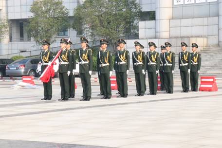 7:30升旗仪式正式开始,英姿飒爽的升旗员、护旗手护卫着国旗,迈着铿锵有力的步伐,步入升旗台。当雄壮激昂的《义勇军进行曲》响起,升旗手振臂一挥,鲜艳的五星红旗迎风展开,冉冉升起。参加升旗仪式的全体人员屏息凝神、庄严肃立,一同面向国旗行注目礼,并和着国歌音乐节奏,齐声高声唱国歌,表达不忘民族伟大复兴光荣使命和祝福祖国繁荣昌盛的美好心愿。