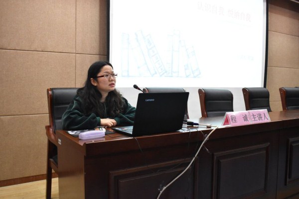 11月28日下午,我校团委邀请到国家二级心理咨询师程诚老师以《认识自我,悦纳自我》为题作为本期“青马”培训的学习课程。各系部青马班学员代表和校学生干部代表共200余名学生参加了本次课程,此次培训由校团委社联指导老师李朋共主持。