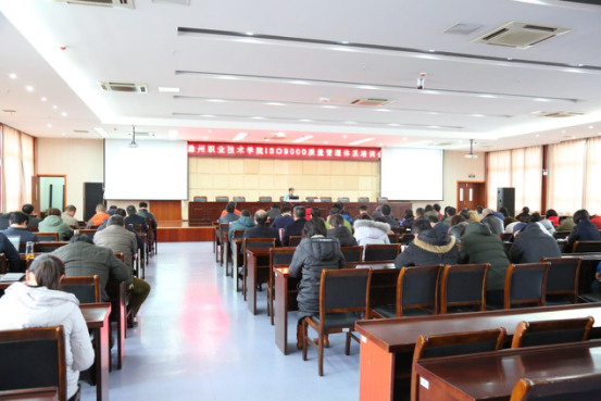为配合推进学院内部质量保证体系诊断与改进工作,2018年3月7日下午,学院在龙蟠校区综合楼学术报告厅举行ISO9000质量管理体系培训会,培训会邀请了国培互联技术培训(北京)中心高级管理体系高级认证咨询师顾静来校开展专题培训讲座。李柱梁、刘树俭、吴大明、程一斌、江洁、陈学军等院领导出席会议,全体副科以上干部、各教研室主任、系实训中心主任参加了培训。